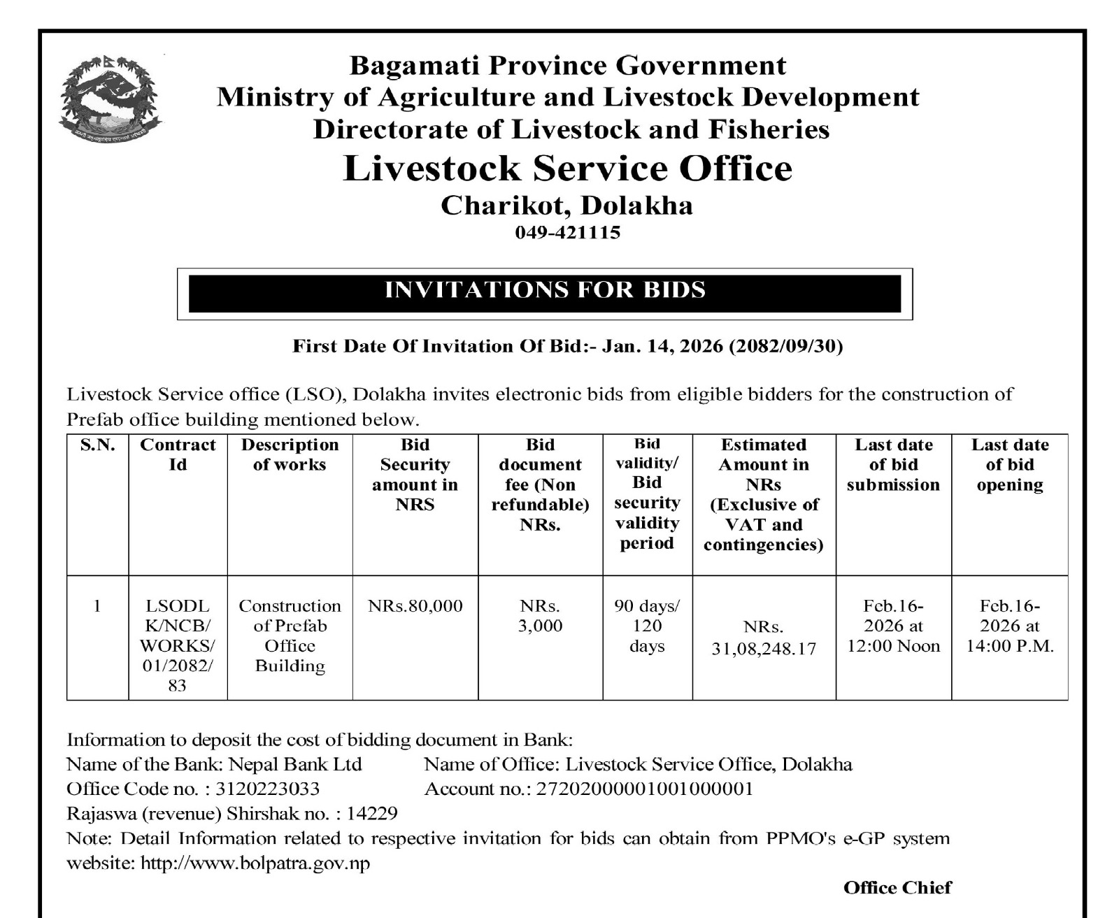 E bid for construction of prefab office building